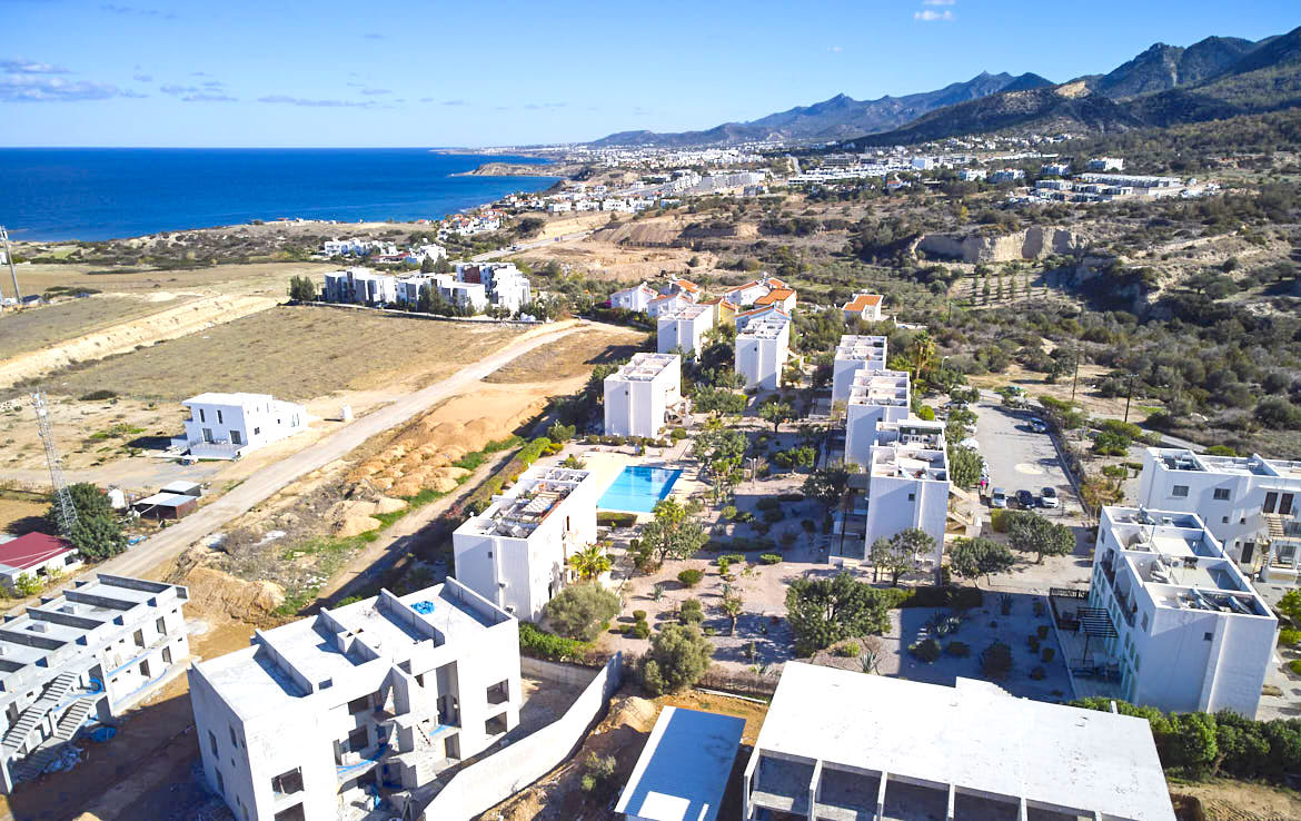 Stylowe mieszkanie 2+1 na sprzedaż w przytulnym kompleksie Crystal Bay View, zlokalizowanym na pierwszym piętrze dwupiętrowego budynku. Układ jest w formacie loftu: na pierwszym poziomie znajduje się jasny salon, otwarta kuchnia, łazienka i sypialnia, na drugim poziomie kolejna sypialnia z własną łazienką.