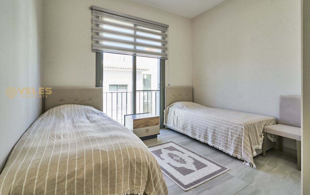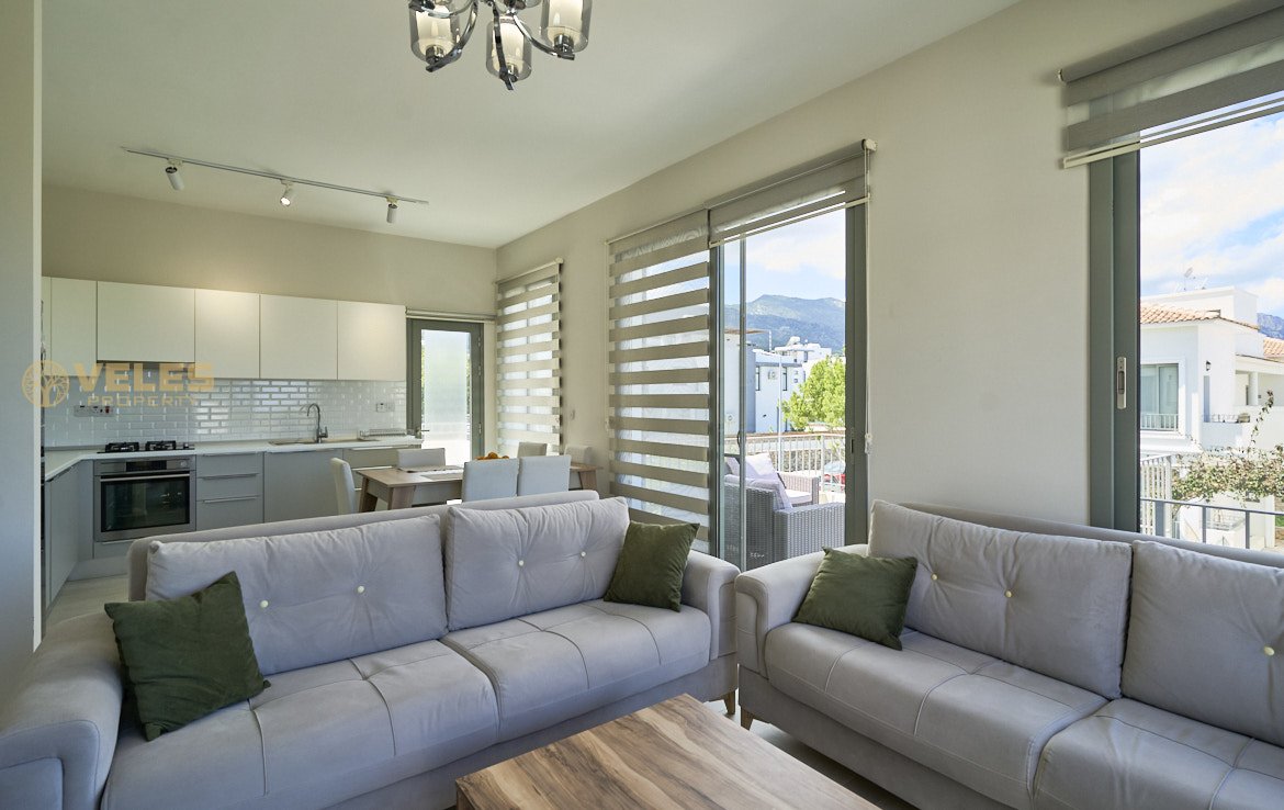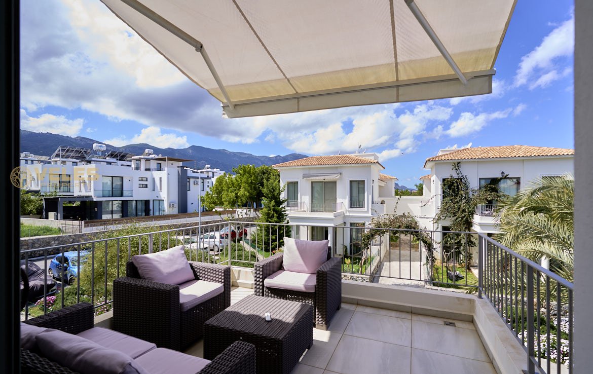 Na sprzedaż komfortowe mieszkanie 2+1 w zadbanym kompleksie KIBRIS TOWNHOUSES, wybudowanym przez KIBRIS DEVELOPMENT, położonym w jednej z najbardziej poszukiwanych lokalizacji Cypru Północnego — Alsancak.