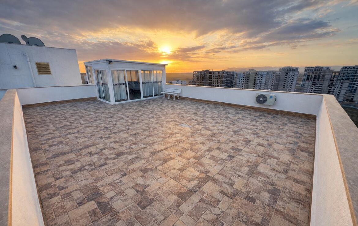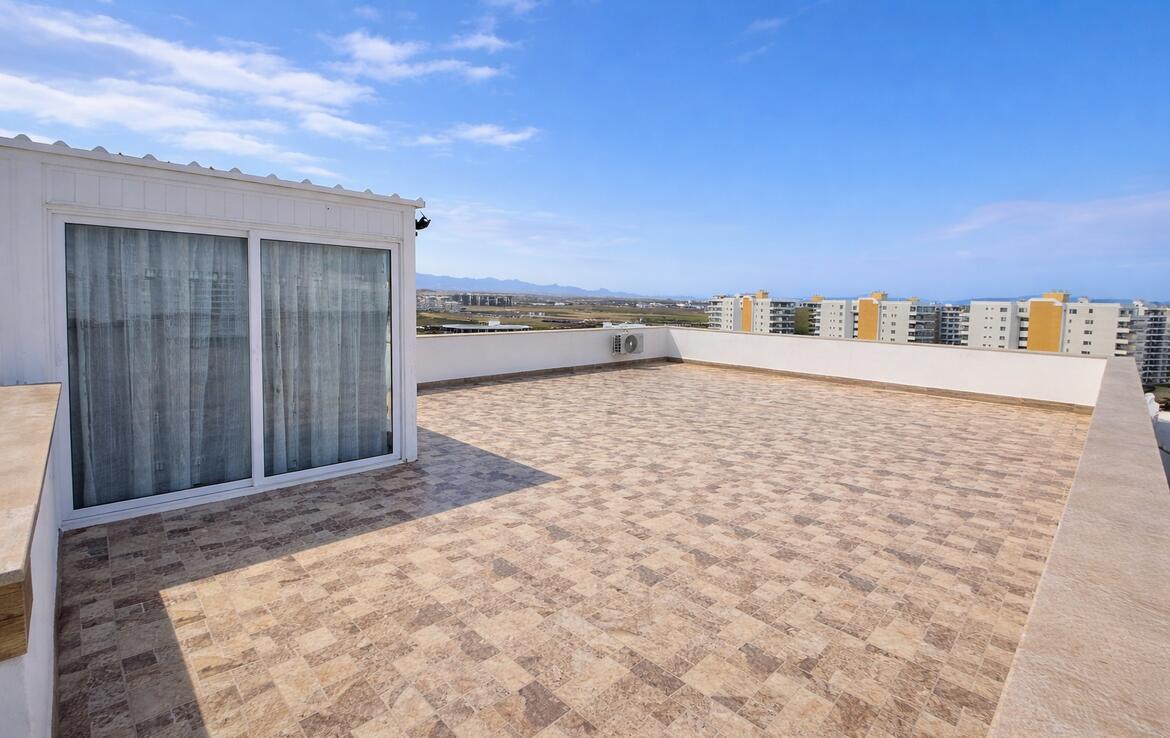 Oferujemy ekskluzywny penthouse 2+1 z tytułem w prestiżowym kompleksie wypoczynkowym Caesar Resort 1 w dzielnicy Iskele w Long Beach. To unikalna oferta na rynku nieruchomości Północnego Cypru: penthouse z tarasem na dachu o powierzchni 150 m², panoramiczne widoki na zatokę Famagusta i góry Karpaza, gotowe do całorocznego życia. Doskonała opcja zarówno na mieszkania prywatne, jak i wynajmy o wysokim dochodzie.