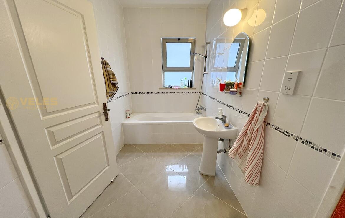 Apartament położony jest w zadbanym i strzeżonym kompleksie w malowniczej okolicy Tatlısu. Przestronny układ obejmuje jasny salon z w pełni wyposażoną kuchnią. Z salonu prowadzi wyjście na duży taras z miejscem do grillowania — idealny do wypoczynku.