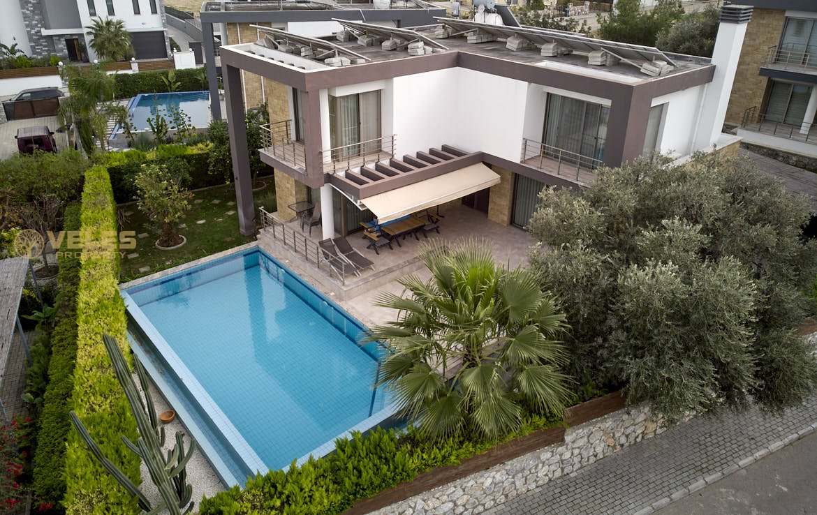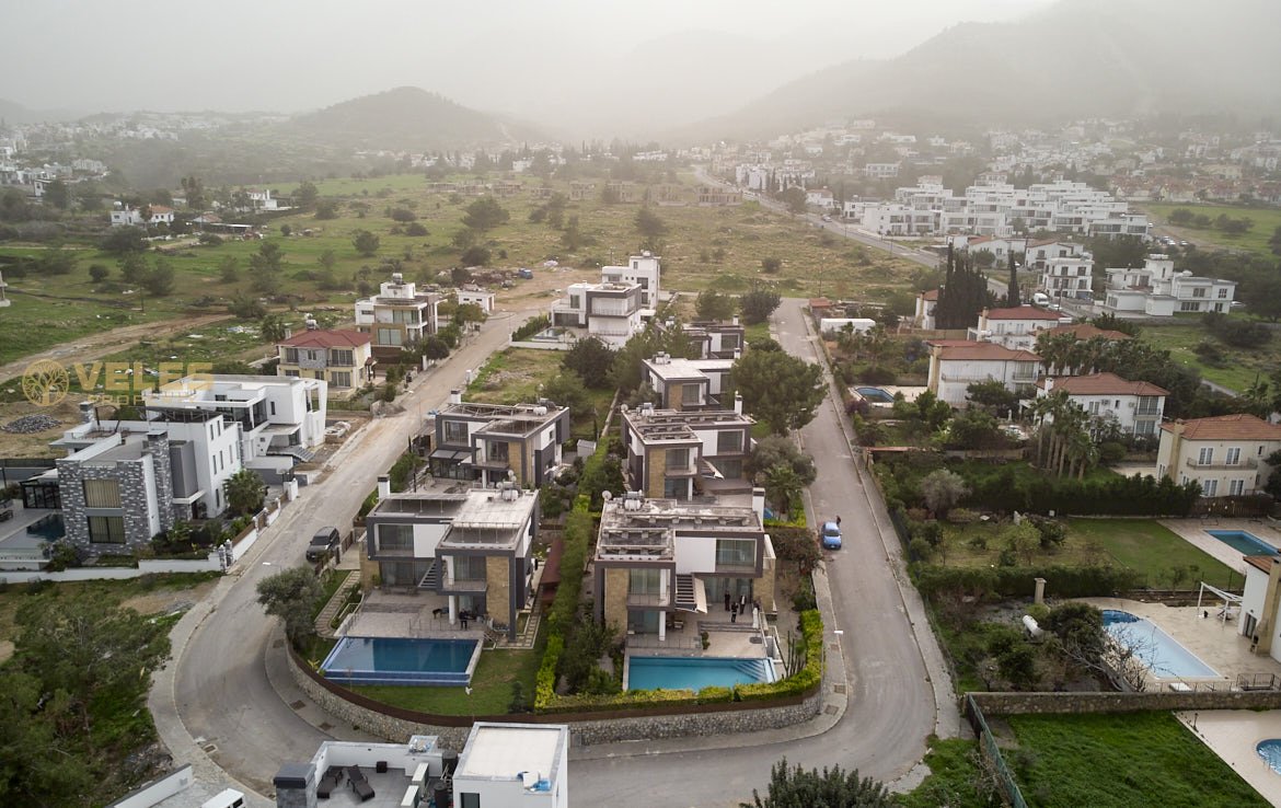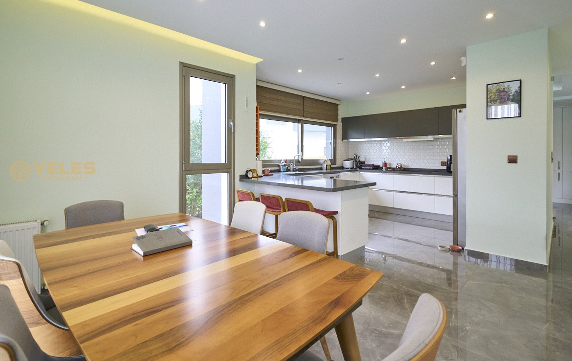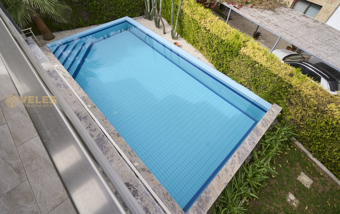 Na sprzedaż nowoczesna willa 3+1 z prywatnym basenem w prestiżowej dzielnicy Çatalköy, Girne, z panoramicznym widokiem na Morze Śródziemne i góry. Dom położony jest na wzniesieniu, całkowita powierzchnia willi wynosi 220 m², działka ma 600 m² i obejmuje zadbany ogród oraz strefę relaksu.