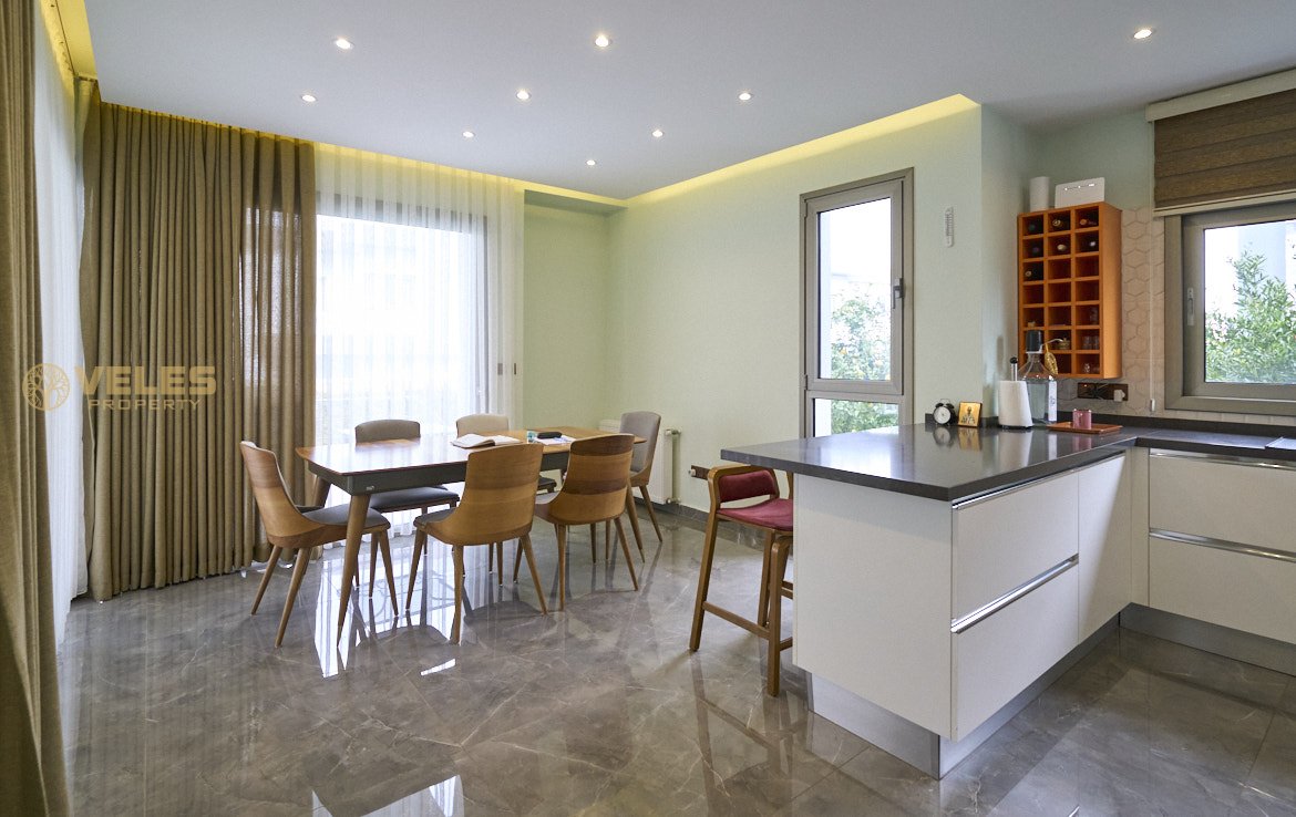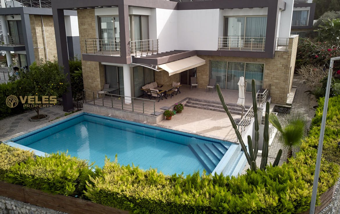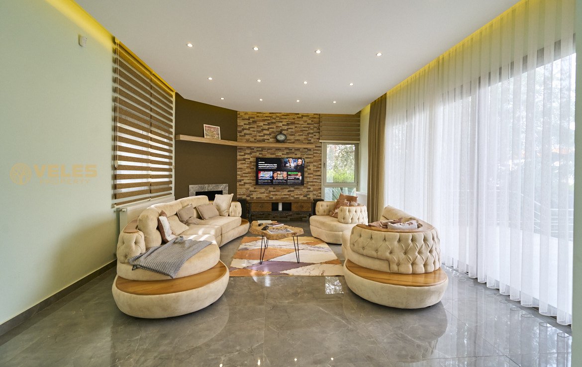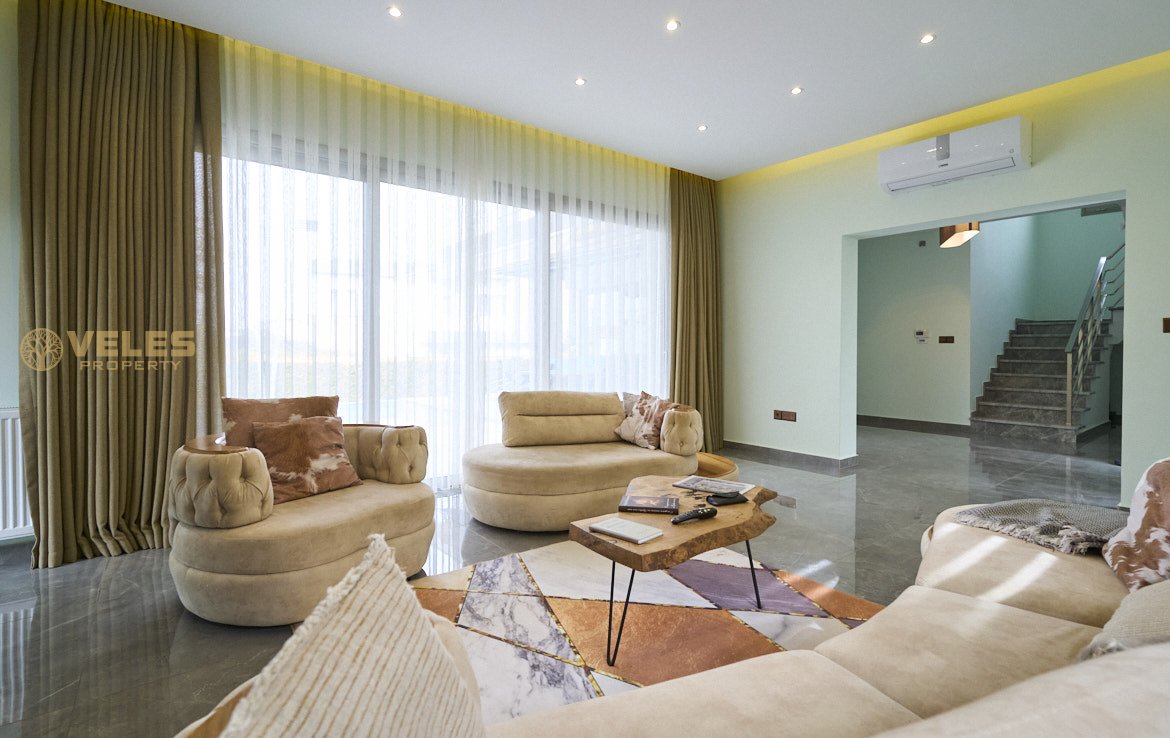 Na sprzedaż nowoczesna willa 3+1 z prywatnym basenem w prestiżowej dzielnicy Çatalköy, Girne, z panoramicznym widokiem na Morze Śródziemne i góry. Dom położony jest na wzniesieniu, całkowita powierzchnia willi wynosi 220 m², działka ma 600 m² i obejmuje zadbany ogród oraz strefę relaksu.