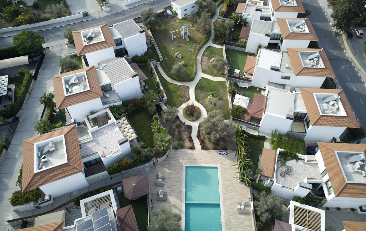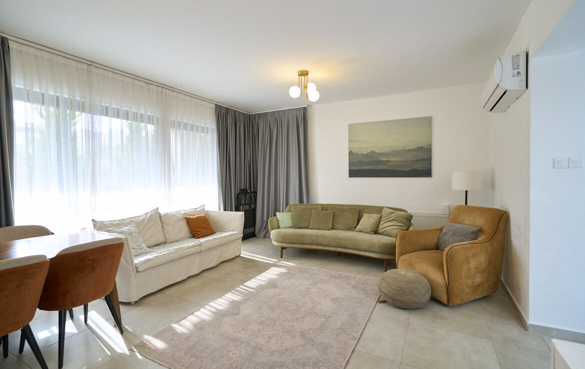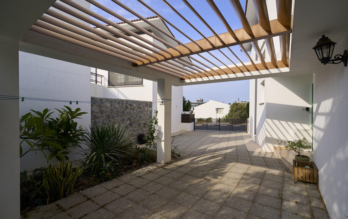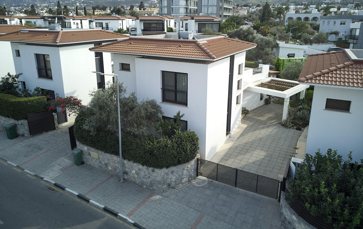 Willa znajduje się zaledwie kilka minut od centrum miasta i wiodących instytucji edukacyjnych w Kyrenii. Powierzchnia terenu zamkniętego wynosi 148 m2, przestronny taras 82 m2.