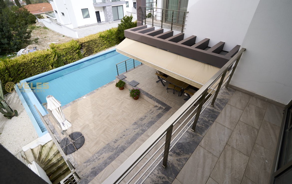 Na sprzedaż nowoczesna willa 3+1 z prywatnym basenem w prestiżowej dzielnicy Çatalköy, Girne (Cypr Północny). Dom położony jest na wzniesieniu i oferuje panoramiczny widok na Morze Śródziemne oraz góry. Całkowita powierzchnia willi wynosi 220 m², a działka ma 600 m² i obejmuje zadbany ogród oraz strefę wypoczynkową.