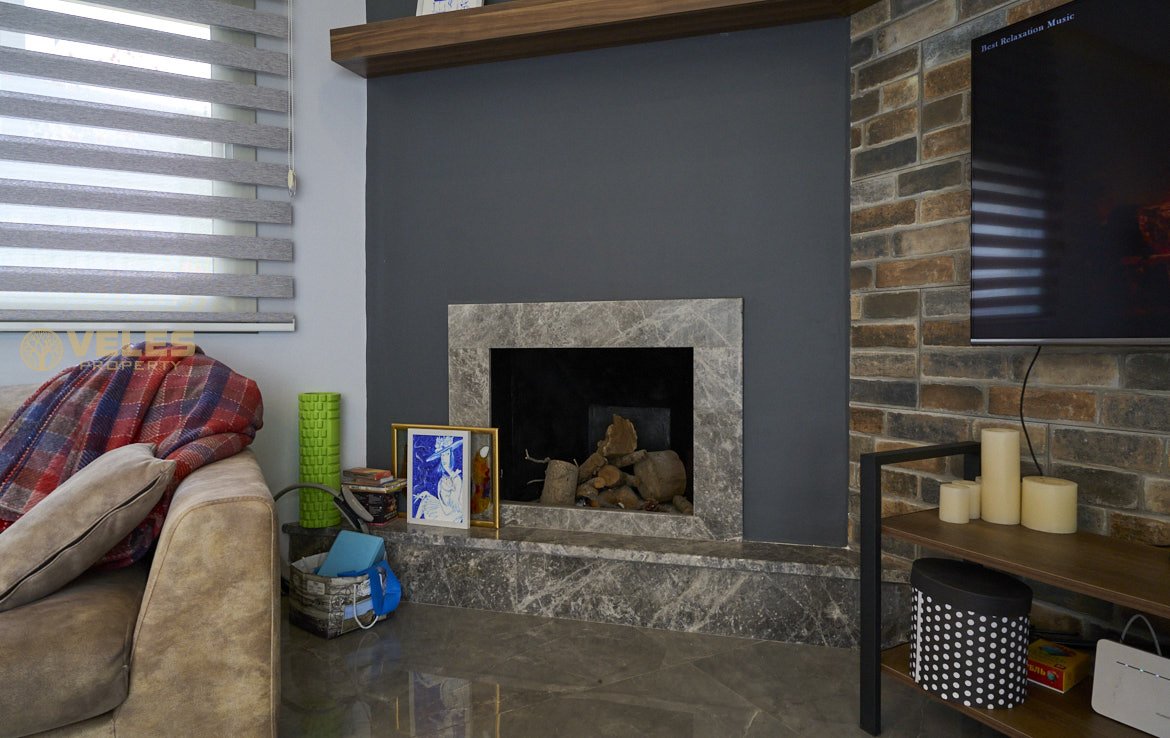 Willa składa się z 3 sypialni, 3 łazienek, przestronnego salonu z kominkiem, oddzielnej kuchni z zabudową oraz tarasu z wyjściem do basenu o wymiarach 10×5 m. W domu zainstalowano ogrzewanie podłogowe, pompę ciepła oraz panele słoneczne. Na posesji znajduje się również parking na 3 samochody.